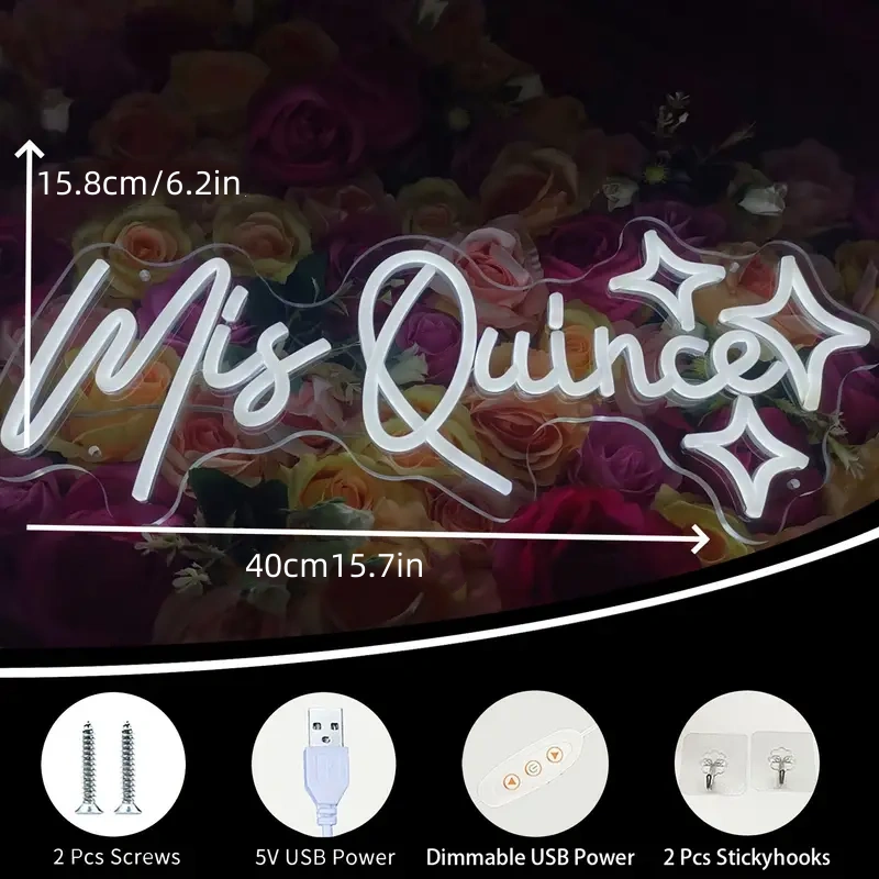 この「ミス・キンセ」LEDネオン看板で、特別な誕生日を華やかに彩り、楽しい雰囲気を作りましょう!今すぐ手に入れて、15歳の誕生日を忘れられないものにしてください。