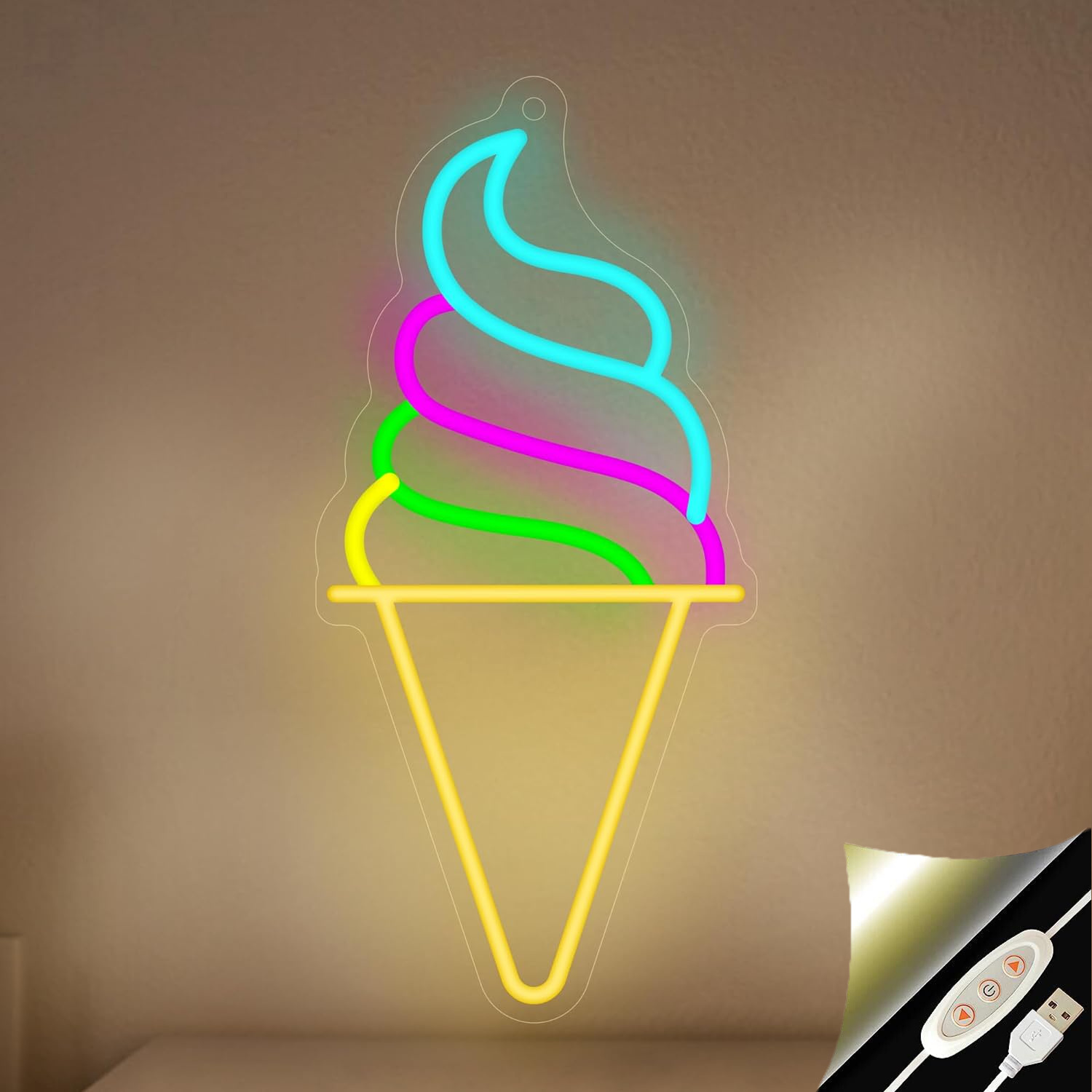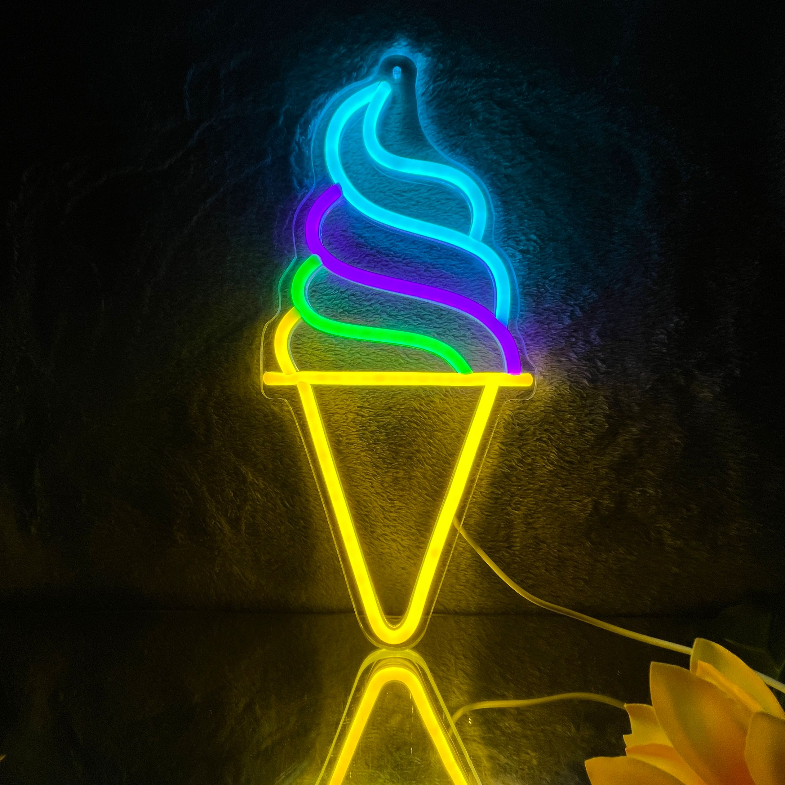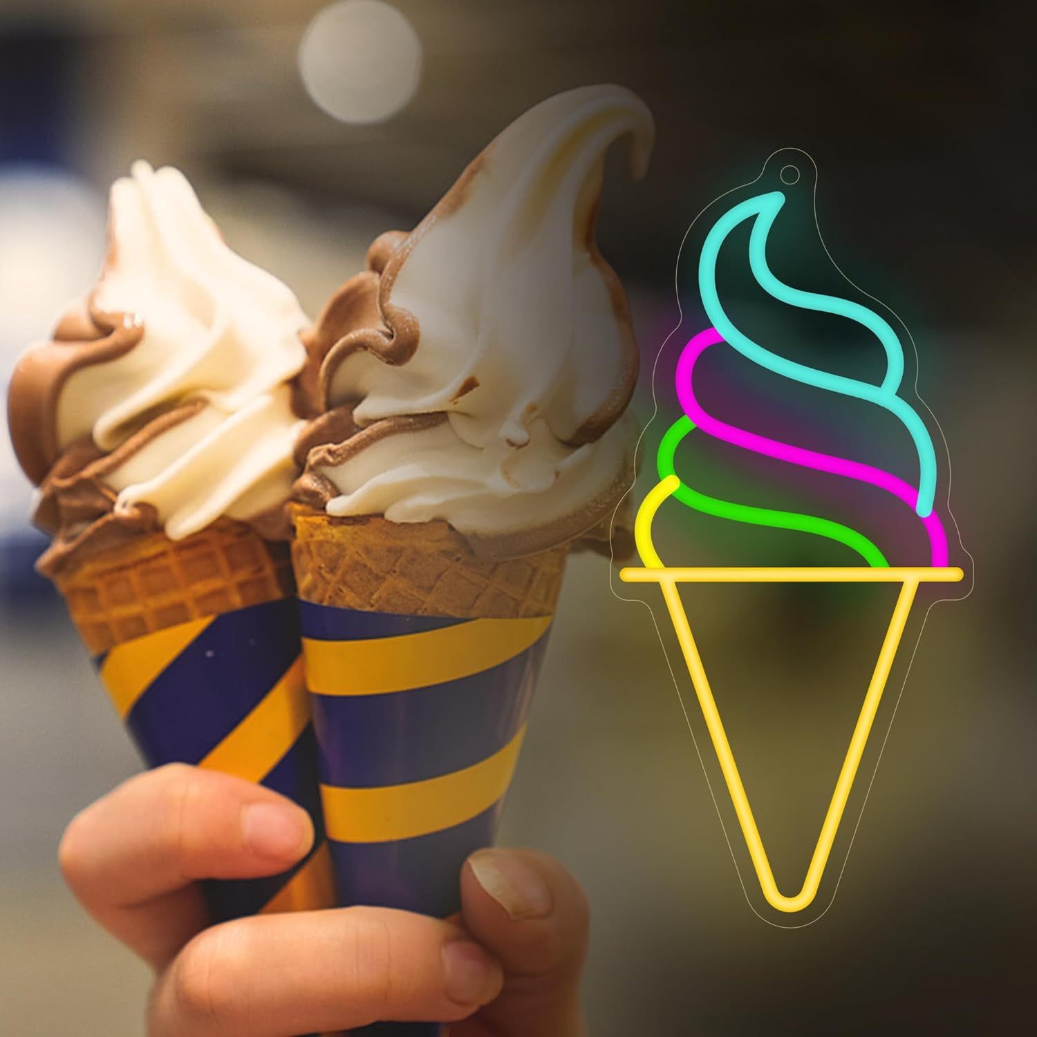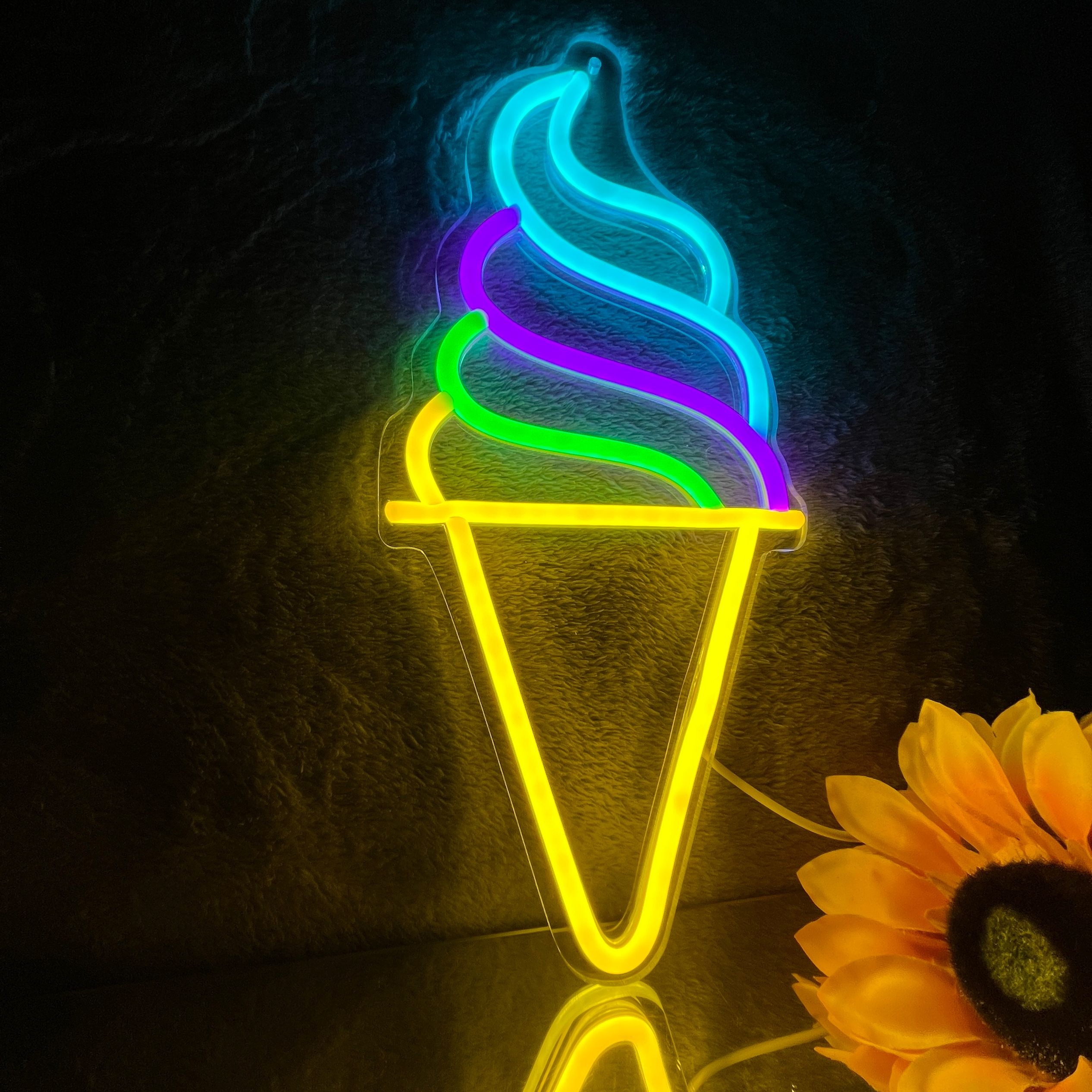 アイスクリーム ネオン看板 - ビビッドな5色ライトで活気を加える装飾アイテム