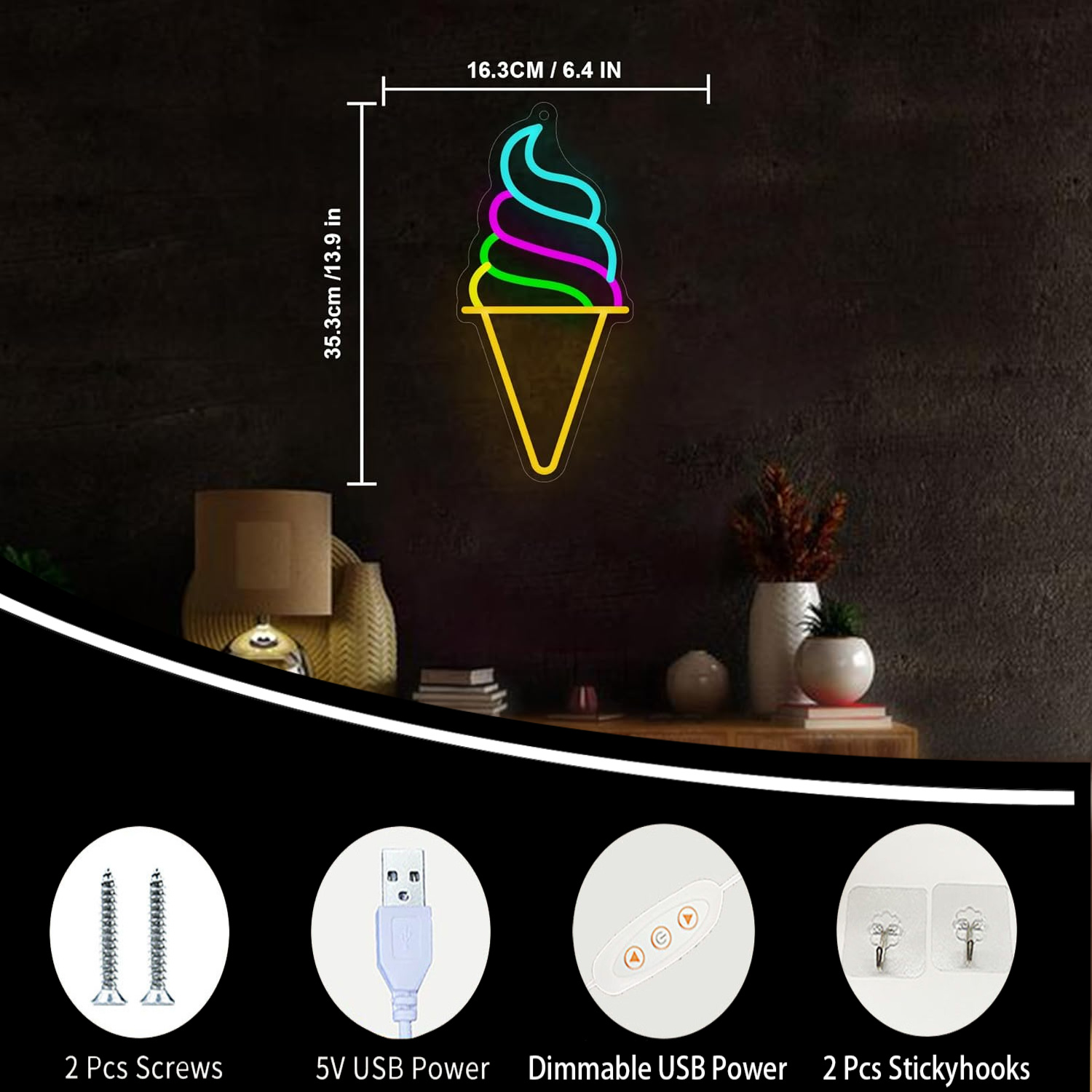 アイスクリームネオンライトで、店舗の雰囲気を活気づけ、現代的で快適な空間を作り出します。パーティーやバー、リビングルームにも最適な装飾アイテムです。